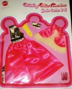 Mattel made two different Miss America Dolls using Barbie's Body and the Steffie head mold. Walk Lively Miss America was sold in 1972 and 1973 and Quick Curl Miss America from 1973 to 1976. Walk Lively was also sold by Kelloggs as a mail in offer (for three dollars!) and there were three Miss America ensembles sold in 1972.