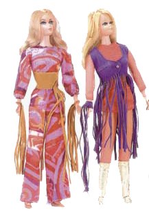 The hippie fashion of the seventies played a major role in the success of Live Action Barbie. With the psychedelic colors and suede fringe that defined 1970, this doll is still a collector favorite today making the collectibles of interest as well. The collectibles shown here are inspired by Live Action Barbie and Live Action Friends.