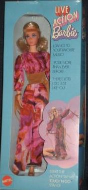 Live Action Barbie was a doll designed for moving and shaking. With one tap of her clear Touch 'n Go stand, she could dance to your favorite music dressed in authentic seventies attire. Capable of posing more than ever before, this Barbie doll captured the essence of the seventies in an extraordinary way.