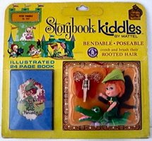 The seven Storybook Kiddles were made in 1967 and 1968. They all featured a storybook character. They were all 3 1/2" tall and came with 24 page illustrated storybooks and props. All of them have big blue eyes.