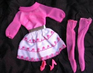 Vintage Barbie Happy Go Pink Dress with Hot Pink Top, White Skirt with Pink Flowered Trim and Silver Belt ![]() |