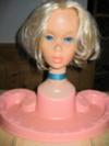 The back of this Barbie Styling Head says 1971 Mattel Inc. Mexico. She also has a string with a ring on the end on the back of her head to allow her hair …