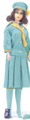 Barbie wore knee high matching socks with yellow trim - which seems really odd today, but was perfectly acceptable back then! She also had a matching tam style hat with a yellow pom pon. Although I don't think this is a particularly popular ensemble with collectors, it can still be harder to find. It was only made for one year, and there don't seem to be that many available. Maybe it wasn't that popular in 1969 either. |