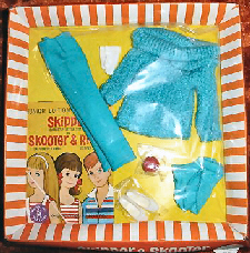 This is an exact match to the Vintage Barbie ensembles Photo Fashion #1648 (1965) and Sporting Casuals #1671 (1966-1967). The Turquoise Dickey and Red Yo-Yo are very hard to find. This ensemble is much easier to find in Skipper's size than Barbie's two versions. The sweater is prone to stretch out of shape, especially the collar. |