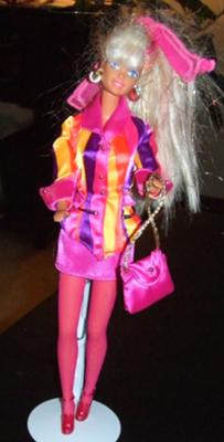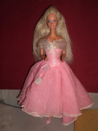 I have this Barbie doll with a pink dress and glitter in her hair. I think she's from the year 89 or 90 and here in Finland she was marketed as a birthday barbie doll. I have searched all over and cannot find a birthday barbie like her. She came with a pink stone necklace and two present bags. She's from the Superstar era and has 1966 Malaysia printed on her back. In the picture she is wearing her original outfit. Does anybody know who she is?