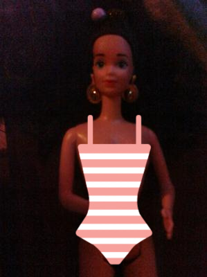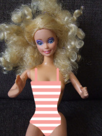 Hi there - I've managed through research to narrow her down to between 78-88, she has Philippines marked on her bottom... she is a tnt - with straight arms that do not bend outwards, backward facing palms. No holes for jewellry, honey coloured blonde hair. I'm trying to put my dolls in a better order so I'd love to know what she should be wearing instead of stuffing her in any old thing.... I think it's a superstar face? Not sure, but can't find a pic of another one similar. She has the asymmetric hairline. All help appreciated. Emma x